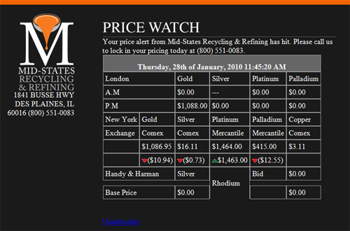 Sign up to receive a daily email with all precious metal pricing.